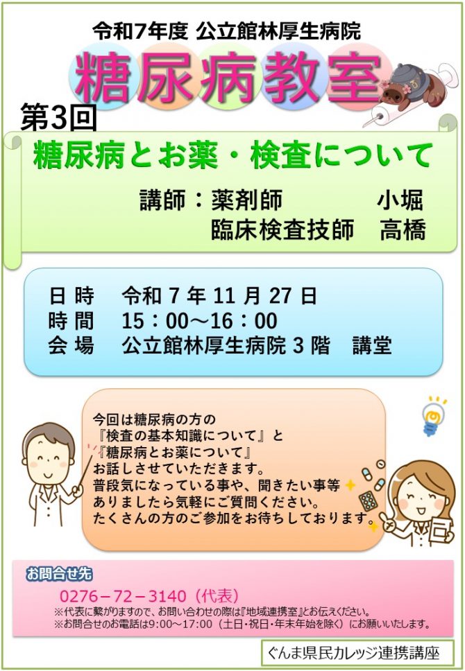 令和7年度糖尿病教室開催予定
