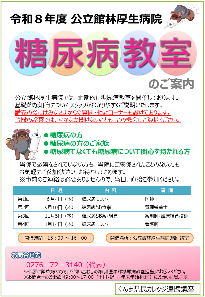 令和8年度糖尿病教室開催予定
