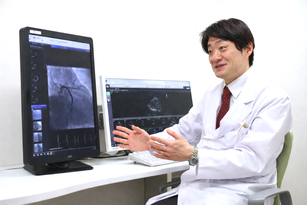 私は、専門医取得後も他施設で年間200例以上PCIを行っておりましたが、専門医の使命であるインターベンション施設の整備および技術伝達を是非ともやってみたいと考えておりました。ちょうどその折、当院よりカテーテル専門医を探しているという話を聞き、実際に見学したところ、カテーテルメディカルスタッフは非常に勉強熱心で熱意を感じました。また地域柄、高度石灰化や他枝病変など難易度の高い症例の割合やバリエーションが多彩であり、PCI術者として非常に濃密な経験を積むことができるという点で、インターベンション施設として当院に高いポテンシャルを秘めていると感じましたので、当院ならば私の経験や資格が活かせると考えました。