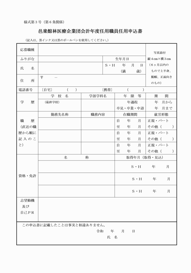 (1) 邑楽館林医療企業団会計年度任用職員任用申込書(様式第3号)